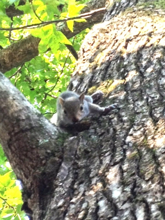 Ive had to be away for several hours now. I fear the assassin cat, who I shooed away five or six times, went back to the base of the tree when he saw us drive down the street. He knows that baby is going get tired and fall out of the tree again.